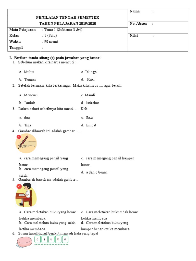 Soal Kelas 1 Tema 2 Kegemaranku Subtema 4 Gemar Membaca Pendidikangratis Id from 1.bp.blogspot.com Contoh soal bahasa indonesia untuk anak tk 2019 11 12 11:04:58, modul pkb tk kk g pages 51 100 text version flip 5. Soal latihan matematika kelas 4 sd 1.pak rudy membagikan uang rp240.000,00 kepada ketiga anaknya secara merata. Contoh soal membaca kelas 1 sd. Soal yang kami bagikan tentu saja sudah sesuai dengan kurikulum terbaru, yakni kurikulum 2013. Jika ada kesalahan soal, kesalahan pengetikkan, kesalahan jawaban, dan kesalahan lainya. Latihan soal penilaian harian kelas 1 (satu) sd tema 3 subtema 1: Menjaga kerukunan di rumah merupakan kewajiban … a. Latihan soal sd akan jadi pembahasan kita kali ini.